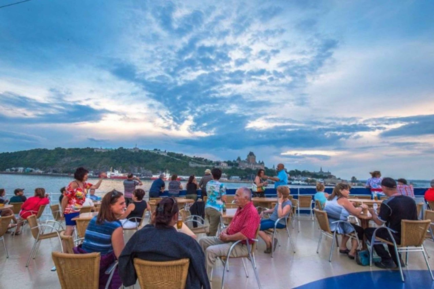 Myöhemmin suuntaat historialliseen vanhaan satamaan ja nouset kiertoajeluristeilylle St. Lawrence -joelle. Rentoudu kannella, kun kaupungin siluetti avautuu edessäsi ja voit ihailla upeita näkymiä Île d’Orléansille, Montmorencyn putouksille kaukana ja Lévisille joen toisella puolella. Asiantunteva opas kertoo kaksikielisesti kiehtovia tarinoita Québecin rikkaasta historiasta, merenkulkuperinteestä ja kuuluisista maamerkeistä.