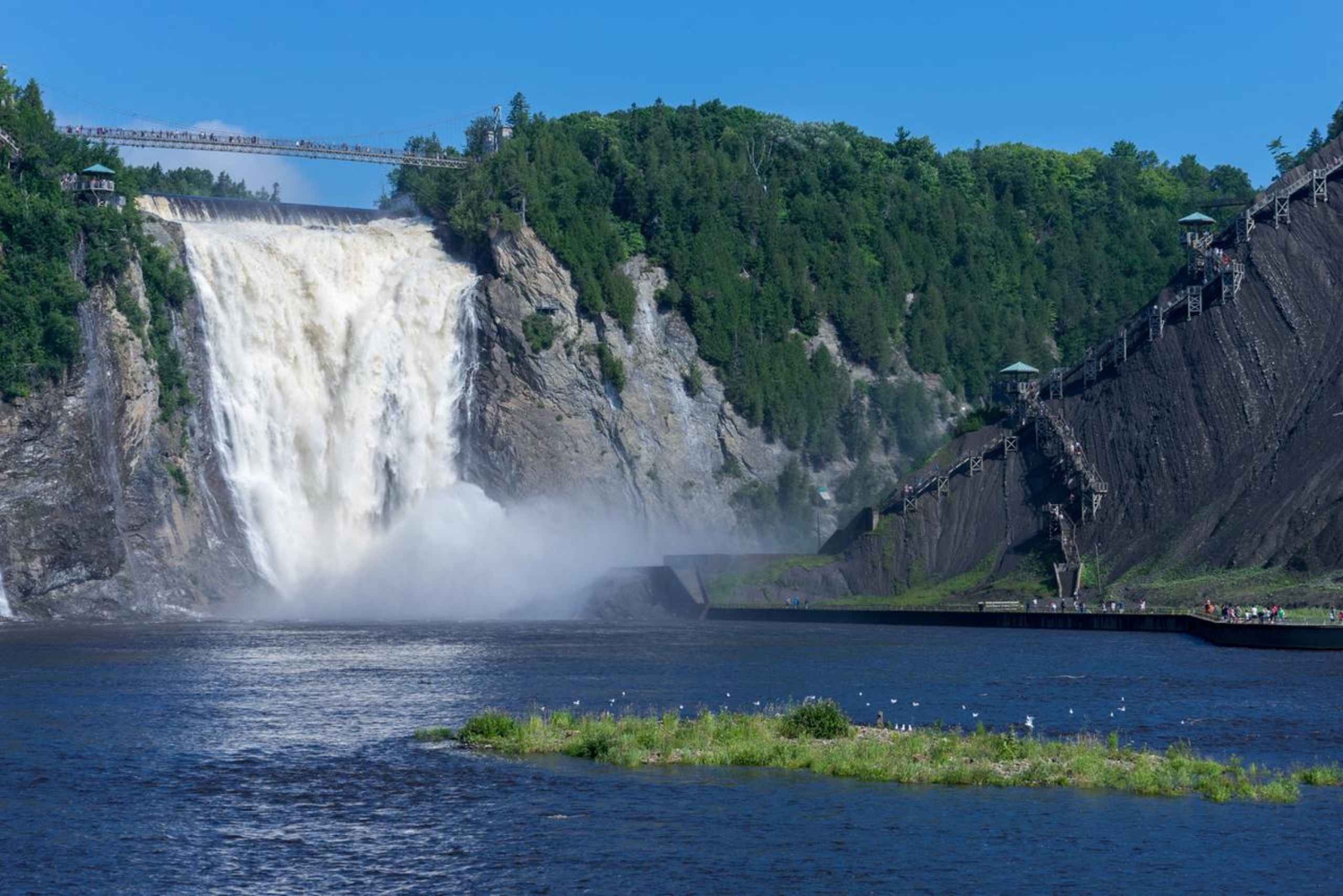 - Kjenn tåken fra Montmorency Falls mens du står på hengebroen